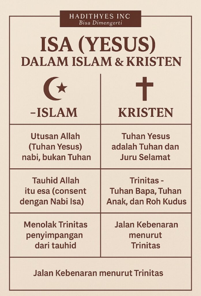 ➡️ Islam mengakui bahwa inti ajaran para nabi adalah sama: tauhid — termasuk Nabi Isa, sehingga Trinitas tidak diakui karena bukan dari ajaran asli Isa.